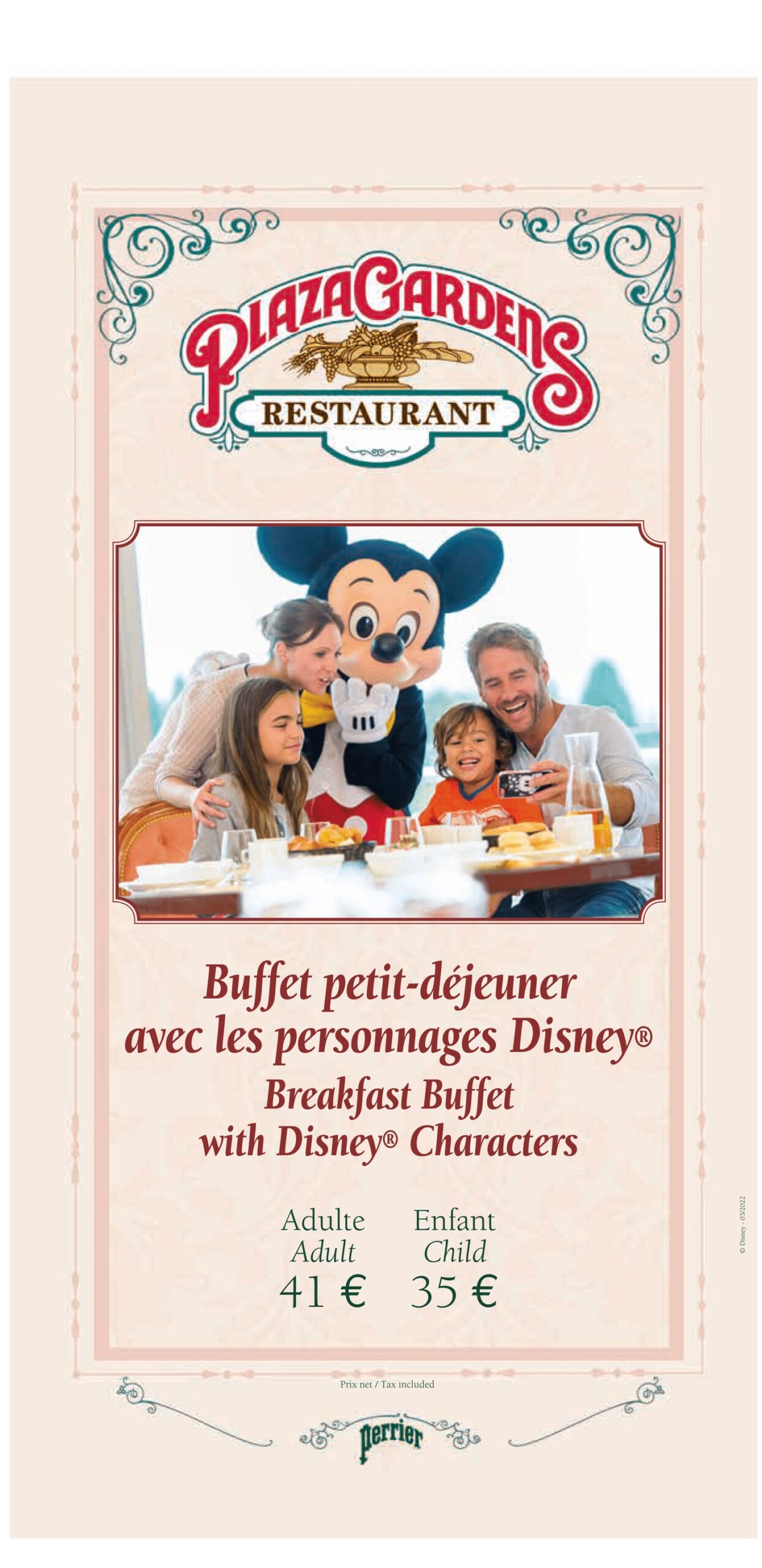 Menù di Auberge de Cendrillon e il ritorno dei personaggi per colazione e pranzo su Plaza Gardens Restaurant