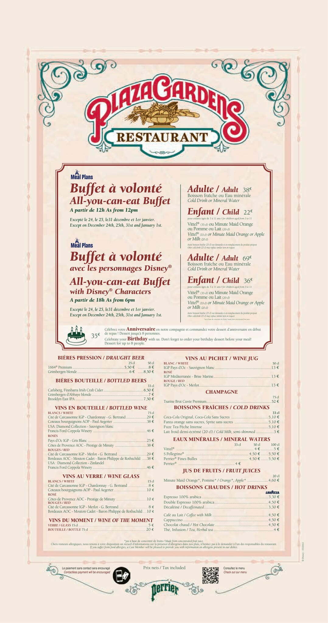 Menù di Auberge de Cendrillon e Plaza Gardens