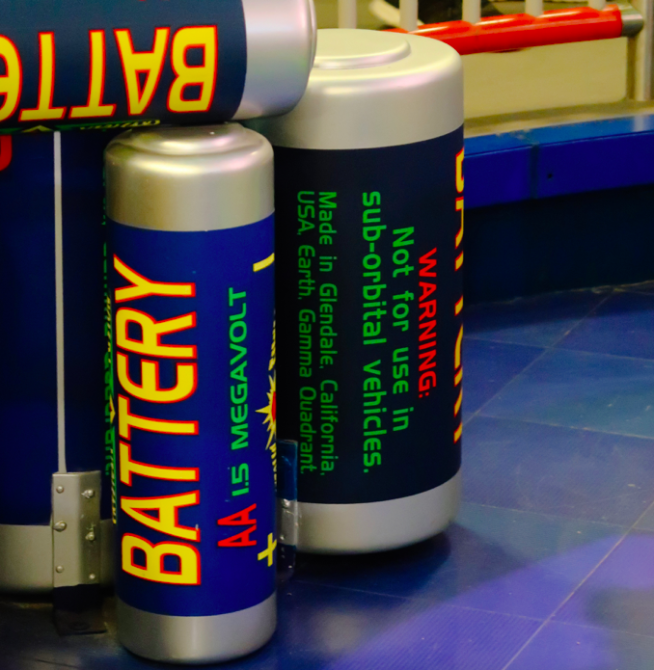 Queste batterie sono quelle che l’imperatore Zurg vuole rubare per alimentare la sua nuova arma di distruzione! Guardate da vicino e leggete Made in Glendale, California. È proprio in questa città infatti che ha sede il Grand Central Creative Campus (o G3C in breve), dove sono presenti molte filiali Disney, ma è soprattutto la città dove è stata stabilita la sede della Walt Disney Imagineering, luogo in cui i più grandi degli Imagineers, i creatori della magia, si uniscono per creare i parchi Disney.