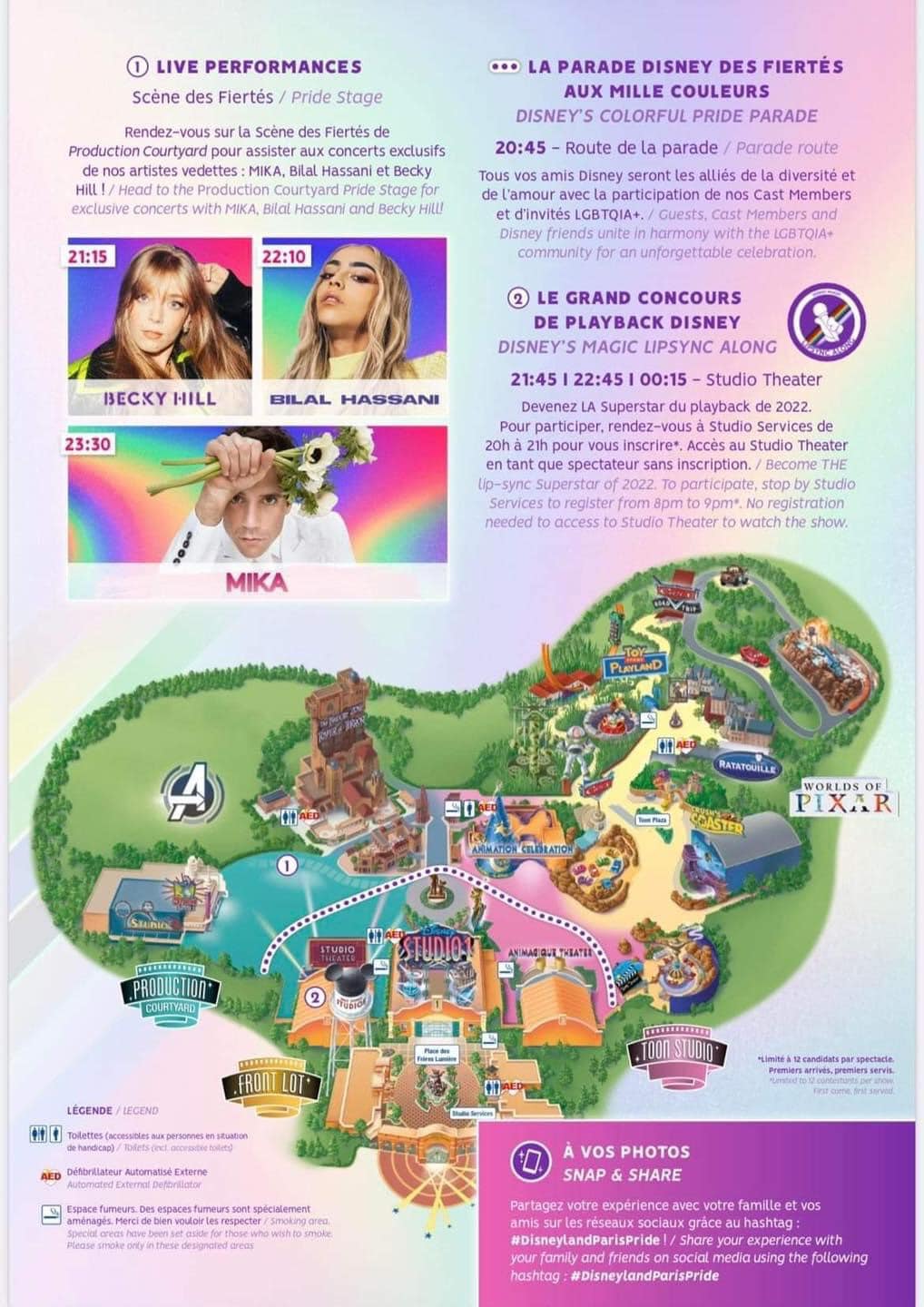 il programma della serata del Disneyland Paris Pride che avrà luogo  Sabato 11 Giugno agli Walt DISNEY Studio 🌈